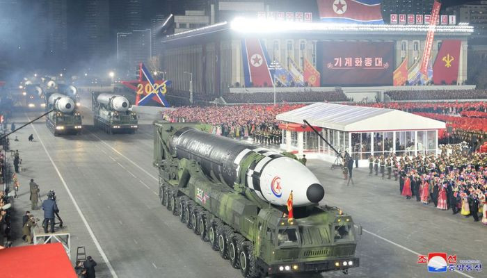N Korea shows off largest-ever number of nuclear missiles at nighttime parade