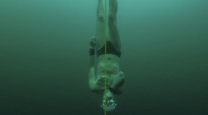 Free-diver plunges to record depth beneath frozen Swiss lake
