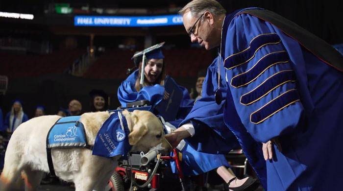 Service dog steals spotlight at a graduation ceremony at Seton Hall University in New Jersey