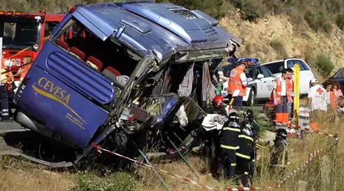 School bus runs over people standing on pavement in Spain
