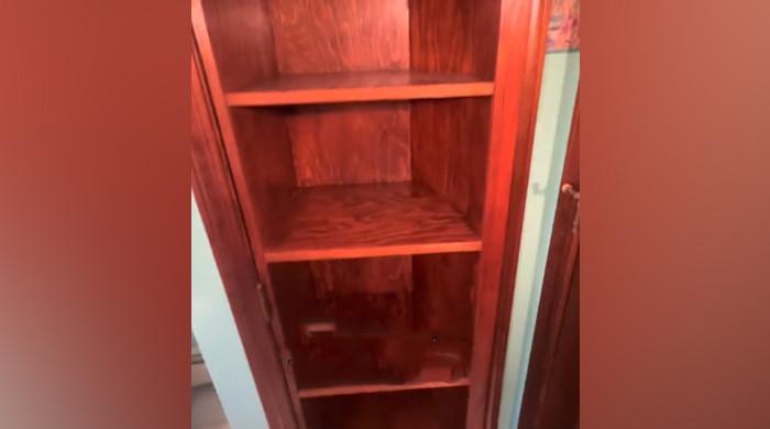 Agent shows secret room behind bathroom cabinet