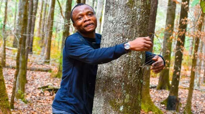 Ghana environmentalist hugs over 1,100 trees in an hour to smash world record